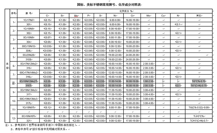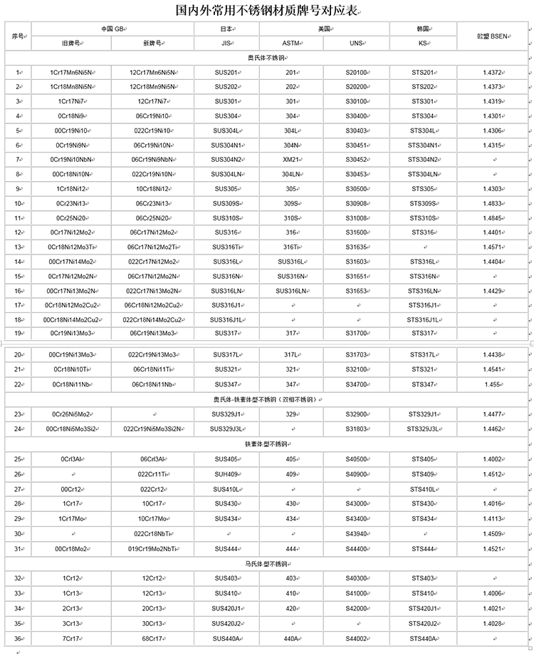 > 公司新闻 > 国标、美标不锈钢常用牌号、化学成分对照表